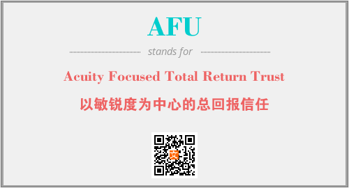 上述内容是“Acuity Focused Total Return Trust”作为“AFU”的缩写,解释为“以敏锐度为中心的总回报信任”时的信息,以及英文缩略词AFU所代表的英文单词,其对应的中文拼音、详细解释以及在英文中的流行度和相关分类、应用领域及应用示例等。
