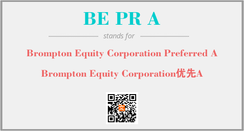 上述内容是“Brompton Equity Corporation Preferred A”作为“BE PR A”的缩写,解释为“Brompton Equity Corporation优先A”时的信息,以及英文缩略词BE PR A所代表的英文单词,其对应的中文拼音、详细解释以及在英文中的流行度和相关分类、应用领域及应用示例等。