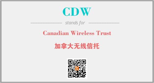 上述内容是“Canadian Wireless Trust”作为“CDW”的缩写,解释为“加拿大无线信托”时的信息,以及英文缩略词CDW所代表的英文单词,其对应的中文拼音、详细解释以及在英文中的流行度和相关分类、应用领域及应用示例等。
