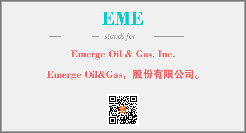 上述内容是“Emerge Oil & Gas, Inc.”作为“EME”的缩写,解释为“Emerge Oil&Gas,股份有限公司。”时的信息,以及英文缩略词EME所代表的英文单词,其对应的中文拼音、详细解释以及在英文中的流行度和相关分类、应用领域及应用示例等。