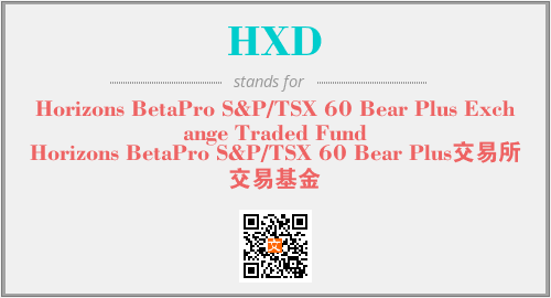 英文缩略词“HXD”经常作为“Horizons BetaPro S&P/TSX 60 Bear Plus Exchange Traded Fund”的英文缩写来使用,中文表示:“Horizons BetaPro S&P/TSX 60 Bear Plus交易所交易基金”。本文将详细介绍英文缩写词HXD所代表英文单词,其对应的中文拼音、详细解释以及在英语中的流行度。此外,还有关于缩略词HXD的分类、应用领域及相关应用示例等。