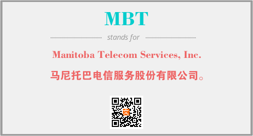 上述内容是“Manitoba Telecom Services, Inc.”作为“MBT”的缩写,解释为“马尼托巴电信服务股份有限公司。”时的信息,以及英文缩略词MBT所代表的英文单词,其对应的中文拼音、详细解释以及在英文中的流行度和相关分类、应用领域及应用示例等。