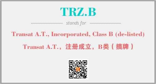 上述内容是“Transat A.T., Incorporated, Class B (de-listed)”作为“TRZ.B”的缩写,解释为“Transat A.T.,注册成立,B类(摘牌)”时的信息,以及英文缩略词TRZ.B所代表的英文单词,其对应的中文拼音、详细解释以及在英文中的流行度和相关分类、应用领域及应用示例等。
