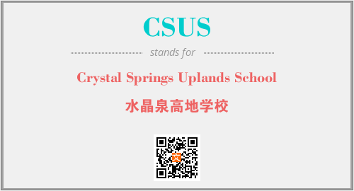 上述内容是“Crystal Springs Uplands School”作为“CSUS”的缩写,解释为“水晶泉高地学校”时的信息,以及英文缩略词CSUS所代表的英文单词,其对应的中文拼音、详细解释以及在英文中的流行度和相关分类、应用领域及应用示例等。