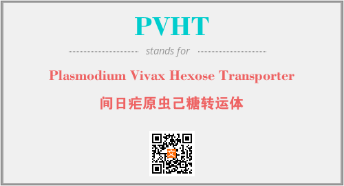 英文缩略词“PVHT”经常作为“Plasmodium Vivax Hexose Transporter”的英文缩写来使用,中文表示:“间日疟原虫己糖转运体”。本文将详细介绍英文缩写词PVHT所代表英文单词,其对应的中文拼音、详细解释以及在英语中的流行度。此外,还有关于缩略词PVHT的分类、应用领域及相关应用示例等。