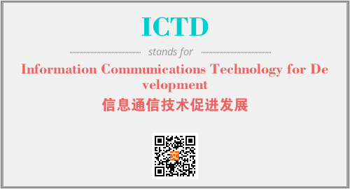 上述内容是“Information Communications Technology for Development”作为“ICTD”的缩写,解释为“信息通信技术促进发展”时的信息,以及英文缩略词ICTD所代表的英文单词,其对应的中文拼音、详细解释以及在英文中的流行度和相关分类、应用领域及应用示例等。
