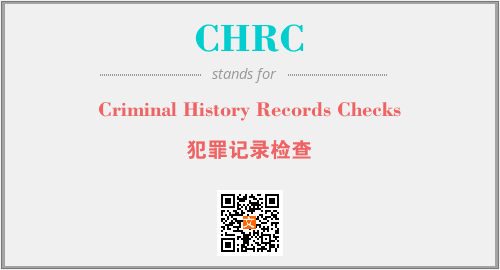 上述内容是“Criminal History Records Checks”作为“CHRC”的缩写,解释为“犯罪记录检查”时的信息,以及英文缩略词CHRC所代表的英文单词,其对应的中文拼音、详细解释以及在英文中的流行度和相关分类、应用领域及应用示例等。