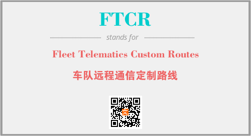 上述内容是“Fleet Telematics Custom Routes”作为“FTCR”的缩写,解释为“车队远程通信定制路线”时的信息,以及英文缩略词FTCR所代表的英文单词,其对应的中文拼音、详细解释以及在英文中的流行度和相关分类、应用领域及应用示例等。