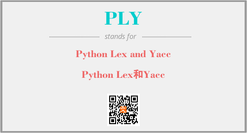 英文缩略词“PLY”经常作为“Python Lex and Yacc”的英文缩写来使用,中文表示:“Python Lex和Yacc”。本文将详细介绍英文缩写词PLY所代表英文单词,其对应的中文拼音、详细解释以及在英语中的流行度。此外,还有关于缩略词PLY的分类、应用领域及相关应用示例等。