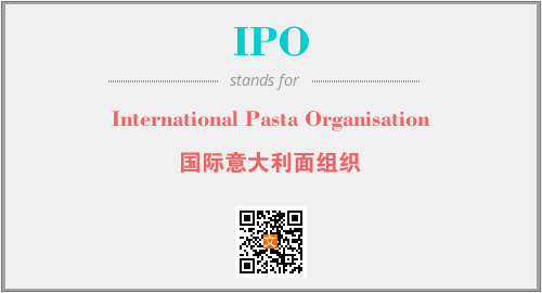 英文缩略词“IPO”经常作为“International Pasta Organisation”的英文缩写来使用,中文表示:“国际意大利面组织”。本文将详细介绍英文缩写词IPO所代表英文单词,其对应的中文拼音、详细解释以及在英语中的流行度。此外,还有关于缩略词IPO的分类、应用领域及相关应用示例等。