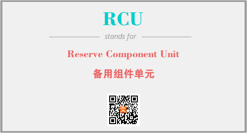 英文缩略词“RCU”经常作为“Reserve Component Unit”的英文缩写来使用,中文表示:“备用组件单元”。本文将详细介绍英文缩写词RCU所代表英文单词,其对应的中文拼音、详细解释以及在英语中的流行度。此外,还有关于缩略词RCU的分类、应用领域及相关应用示例等。