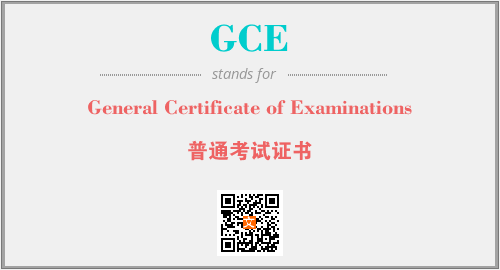 英文缩略词“GCE”经常作为“General Certificate of Examinations”的英文缩写来使用,中文表示:“普通考试证书”。本文将详细介绍英文缩写词GCE所代表英文单词,其对应的中文拼音、详细解释以及在英语中的流行度。此外,还有关于缩略词GCE的分类、应用领域及相关应用示例等。