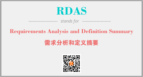上述内容是“Requirements Analysis and Definition Summary”作为“RDAS”的缩写,解释为“需求分析和定义摘要”时的信息,以及英文缩略词RDAS所代表的英文单词,其对应的中文拼音、详细解释以及在英文中的流行度和相关分类、应用领域及应用示例等。