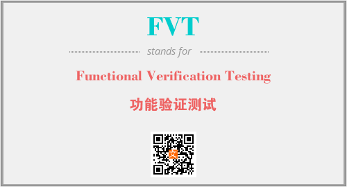 英文缩略词“FVT”经常作为“Functional Verification Testing”的英文缩写来使用,中文表示:“功能验证测试”。本文将详细介绍英文缩写词FVT所代表英文单词,其对应的中文拼音、详细解释以及在英语中的流行度。此外,还有关于缩略词FVT的分类、应用领域及相关应用示例等。