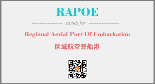英文缩略词“RAPOE”经常作为“Regional Aerial Port Of Embarkation”的英文缩写来使用,中文表示:“区域航空登船港”。本文将详细介绍英文缩写词RAPOE所代表英文单词,其对应的中文拼音、详细解释以及在英语中的流行度。此外,还有关于缩略词RAPOE的分类、应用领域及相关应用示例等。