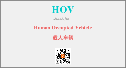 上述内容是“Human Occupied Vehicle”作为“HOV”的缩写,解释为“载人车辆”时的信息,以及英文缩略词HOV所代表的英文单词,其对应的中文拼音、详细解释以及在英文中的流行度和相关分类、应用领域及应用示例等。