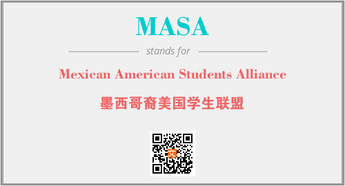 以上为Mexican American Students Alliance英文缩略词MASA的中文解释,以及该英文缩写在英语的流行度、分类和应用领域方面的信息。