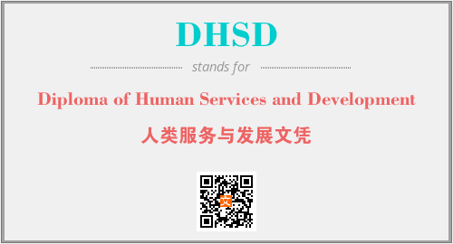 上述内容是“Diploma of Human Services and Development”作为“DHSD”的缩写,解释为“人类服务与发展文凭”时的信息,以及英文缩略词DHSD所代表的英文单词,其对应的中文拼音、详细解释以及在英文中的流行度和相关分类、应用领域及应用示例等。