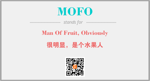 上述内容是“Man Of Fruit, Obviously”作为“MOFO”的缩写,解释为“很明显,是个水果人”时的信息,以及英文缩略词MOFO所代表的英文单词,其对应的中文拼音、详细解释以及在英文中的流行度和相关分类、应用领域及应用示例等。