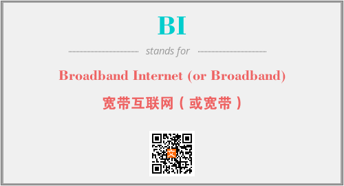 上述内容是“Broadband Internet (or Broadband)”作为“BI”的缩写,解释为“宽带互联网(或宽带)”时的信息,以及英文缩略词BI所代表的英文单词,其对应的中文拼音、详细解释以及在英文中的流行度和相关分类、应用领域及应用示例等。