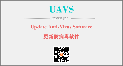 英文缩略词“UAVS”经常作为“Update Anti-Virus Software”的英文缩写来使用,中文表示:“更新防病毒软件”。本文将详细介绍英文缩写词UAVS所代表英文单词,其对应的中文拼音、详细解释以及在英语中的流行度。此外,还有关于缩略词UAVS的分类、应用领域及相关应用示例等。