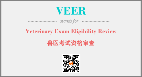 英文缩略词“VEER”经常作为“Veterinary Exam Eligibility Review”的英文缩写来使用,中文表示:“兽医考试资格审查”。本文将详细介绍英文缩写词VEER所代表英文单词,其对应的中文拼音、详细解释以及在英语中的流行度。此外,还有关于缩略词VEER的分类、应用领域及相关应用示例等。