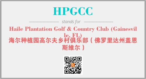以上为Haile Plantation Golf & Country Club (Gainesville, FL)英文缩略词HPGCC的中文解释,以及该英文缩写在英语的流行度、分类和应用领域方面的信息。