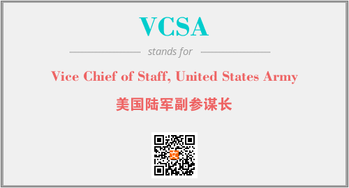 英文缩略词“VCSA”经常作为“Vice Chief of Staff, United States Army”的英文缩写来使用,中文表示:“美国陆军副参谋长”。本文将详细介绍英文缩写词VCSA所代表英文单词,其对应的中文拼音、详细解释以及在英语中的流行度。此外,还有关于缩略词VCSA的分类、应用领域及相关应用示例等。
