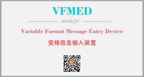 上述内容是“Variable Format Message Entry Device”作为“VFMED”的缩写,解释为“变格信息输入装置”时的信息,以及英文缩略词VFMED所代表的英文单词,其对应的中文拼音、详细解释以及在英文中的流行度和相关分类、应用领域及应用示例等。
