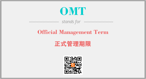 英文缩略词“OMT”经常作为“Official Management Term”的英文缩写来使用,中文表示:“正式管理期限”。本文将详细介绍英文缩写词OMT所代表英文单词,其对应的中文拼音、详细解释以及在英语中的流行度。此外,还有关于缩略词OMT的分类、应用领域及相关应用示例等。