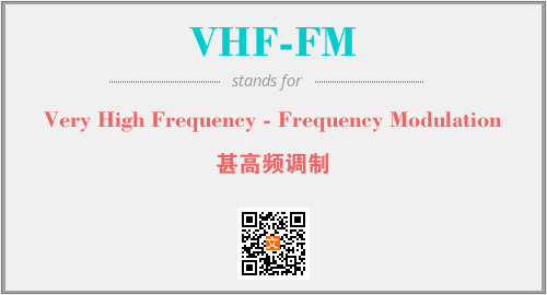 上述内容是“Very High Frequency - Frequency Modulation”作为“VHF-FM”的缩写,解释为“甚高频调制”时的信息,以及英文缩略词VHF-FM所代表的英文单词,其对应的中文拼音、详细解释以及在英文中的流行度和相关分类、应用领域及应用示例等。