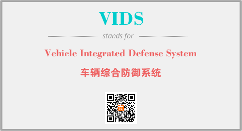 上述内容是“Vehicle Integrated Defense System”作为“VIDS”的缩写,解释为“车辆综合防御系统”时的信息,以及英文缩略词VIDS所代表的英文单词,其对应的中文拼音、详细解释以及在英文中的流行度和相关分类、应用领域及应用示例等。