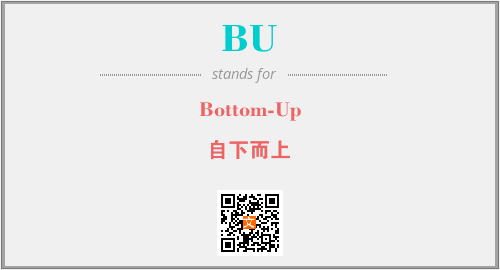 上述内容是“Bottom-Up”作为“BU”的缩写,解释为“自下而上”时的信息,以及英文缩略词BU所代表的英文单词,其对应的中文拼音、详细解释以及在英文中的流行度和相关分类、应用领域及应用示例等。