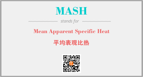 上述内容是“Mean Apparent Specific Heat”作为“MASH”的缩写,解释为“平均表观比热”时的信息,以及英文缩略词MASH所代表的英文单词,其对应的中文拼音、详细解释以及在英文中的流行度和相关分类、应用领域及应用示例等。