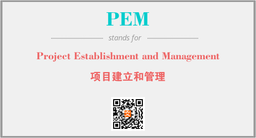 上述内容是“Project Establishment and Management”作为“PEM”的缩写,解释为“项目建立和管理”时的信息,以及英文缩略词PEM所代表的英文单词,其对应的中文拼音、详细解释以及在英文中的流行度和相关分类、应用领域及应用示例等。