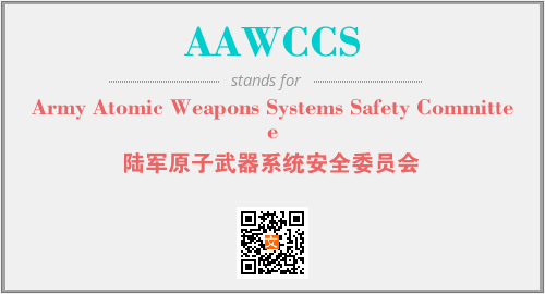 英文缩略词“AAWCCS”经常作为“Army Atomic Weapons Systems Safety Committee”的英文缩写来使用,中文表示:“陆军原子武器系统安全委员会”。本文将详细介绍英文缩写词AAWCCS所代表英文单词,其对应的中文拼音、详细解释以及在英语中的流行度。此外,还有关于缩略词AAWCCS的分类、应用领域及相关应用示例等。
