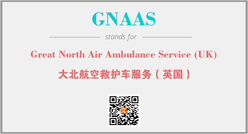 英文缩略词“GNAAS”经常作为“Great North Air Ambulance Service (UK)”的英文缩写来使用,中文表示:“大北航空救护车服务(英国)”。本文将详细介绍英文缩写词GNAAS所代表英文单词,其对应的中文拼音、详细解释以及在英语中的流行度。此外,还有关于缩略词GNAAS的分类、应用领域及相关应用示例等。