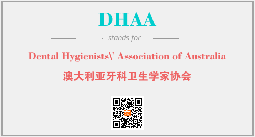 上述内容是“Dental Hygienists\' Association of Australia”作为“DHAA”的缩写,解释为“澳大利亚牙科卫生学家协会”时的信息,以及英文缩略词DHAA所代表的英文单词,其对应的中文拼音、详细解释以及在英文中的流行度和相关分类、应用领域及应用示例等。