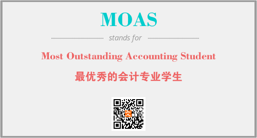 以上为Most Outstanding Accounting Student英文缩略词MOAS的中文解释,以及该英文缩写在英语的流行度、分类和应用领域方面的信息。