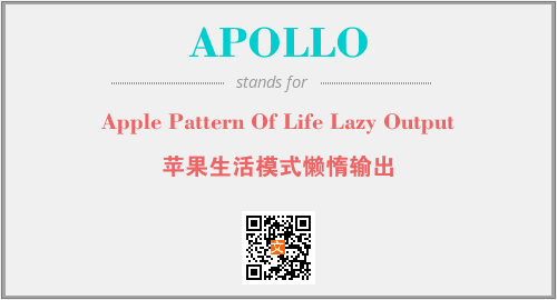 上述内容是“Apple Pattern Of Life Lazy Output”作为“APOLLO”的缩写,解释为“苹果生活模式懒惰输出”时的信息,以及英文缩略词APOLLO所代表的英文单词,其对应的中文拼音、详细解释以及在英文中的流行度和相关分类、应用领域及应用示例等。