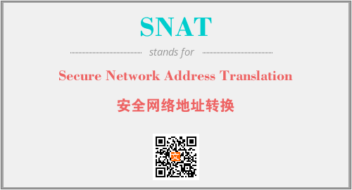 上述内容是“Secure Network Address Translation”作为“SNAT”的缩写,解释为“安全网络地址转换”时的信息,以及英文缩略词SNAT所代表的英文单词,其对应的中文拼音、详细解释以及在英文中的流行度和相关分类、应用领域及应用示例等。