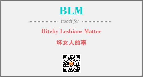 上述内容是“Bitchy Lesbians Matter”作为“BLM”的缩写,解释为“坏女人的事”时的信息,以及英文缩略词BLM所代表的英文单词,其对应的中文拼音、详细解释以及在英文中的流行度和相关分类、应用领域及应用示例等。