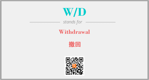 英文缩略词“W/D”经常作为“Withdrawal”的英文缩写来使用,中文表示:“撤回”。本文将详细介绍英文缩写词W/D所代表英文单词,其对应的中文拼音、详细解释以及在英语中的流行度。此外,还有关于缩略词W/D的分类、应用领域及相关应用示例等。