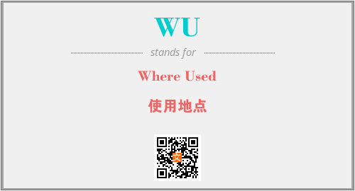 上述内容是“Where Used”作为“WU”的缩写,解释为“使用地点”时的信息,以及英文缩略词WU所代表的英文单词,其对应的中文拼音、详细解释以及在英文中的流行度和相关分类、应用领域及应用示例等。