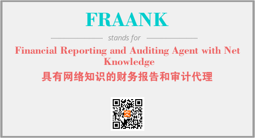 上述内容是“Financial Reporting and Auditing Agent with Net Knowledge”作为“FRAANK”的缩写,解释为“具有网络知识的财务报告和审计代理”时的信息,以及英文缩略词FRAANK所代表的英文单词,其对应的中文拼音、详细解释以及在英文中的流行度和相关分类、应用领域及应用示例等。