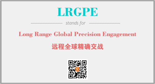上述内容是“Long Range Global Precision Engagement”作为“LRGPE”的缩写,解释为“远程全球精确交战”时的信息,以及英文缩略词LRGPE所代表的英文单词,其对应的中文拼音、详细解释以及在英文中的流行度和相关分类、应用领域及应用示例等。