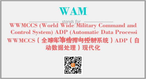 上述内容是“WWMCCS (World Wide Military Command and Control System) ADP (Automatic Data Processing) Modernization”作为“WAM”的缩写,解释为“WWMCCS(全球军事指挥与控制系统)ADP(自动数据处理)现代化”时的信息,以及英文缩略词WAM所代表的英文单词,其对应的中文拼音、详细解释以及在英文中的流行度和相关分类、应用领域及应用示例等。