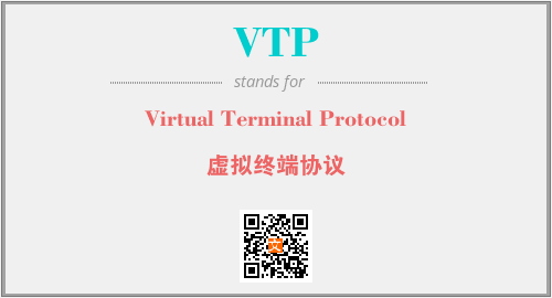 上述内容是“Virtual Terminal Protocol”作为“VTP”的缩写,解释为“虚拟终端协议”时的信息,以及英文缩略词VTP所代表的英文单词,其对应的中文拼音、详细解释以及在英文中的流行度和相关分类、应用领域及应用示例等。