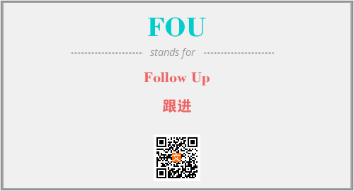 英文缩略词“FOU”经常作为“Follow Up”的英文缩写来使用,中文表示:“跟进”。本文将详细介绍英文缩写词FOU所代表英文单词,其对应的中文拼音、详细解释以及在英语中的流行度。此外,还有关于缩略词FOU的分类、应用领域及相关应用示例等。