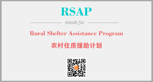 上述内容是“Rural Shelter Assistance Program”作为“RSAP”的缩写,解释为“农村住房援助计划”时的信息,以及英文缩略词RSAP所代表的英文单词,其对应的中文拼音、详细解释以及在英文中的流行度和相关分类、应用领域及应用示例等。